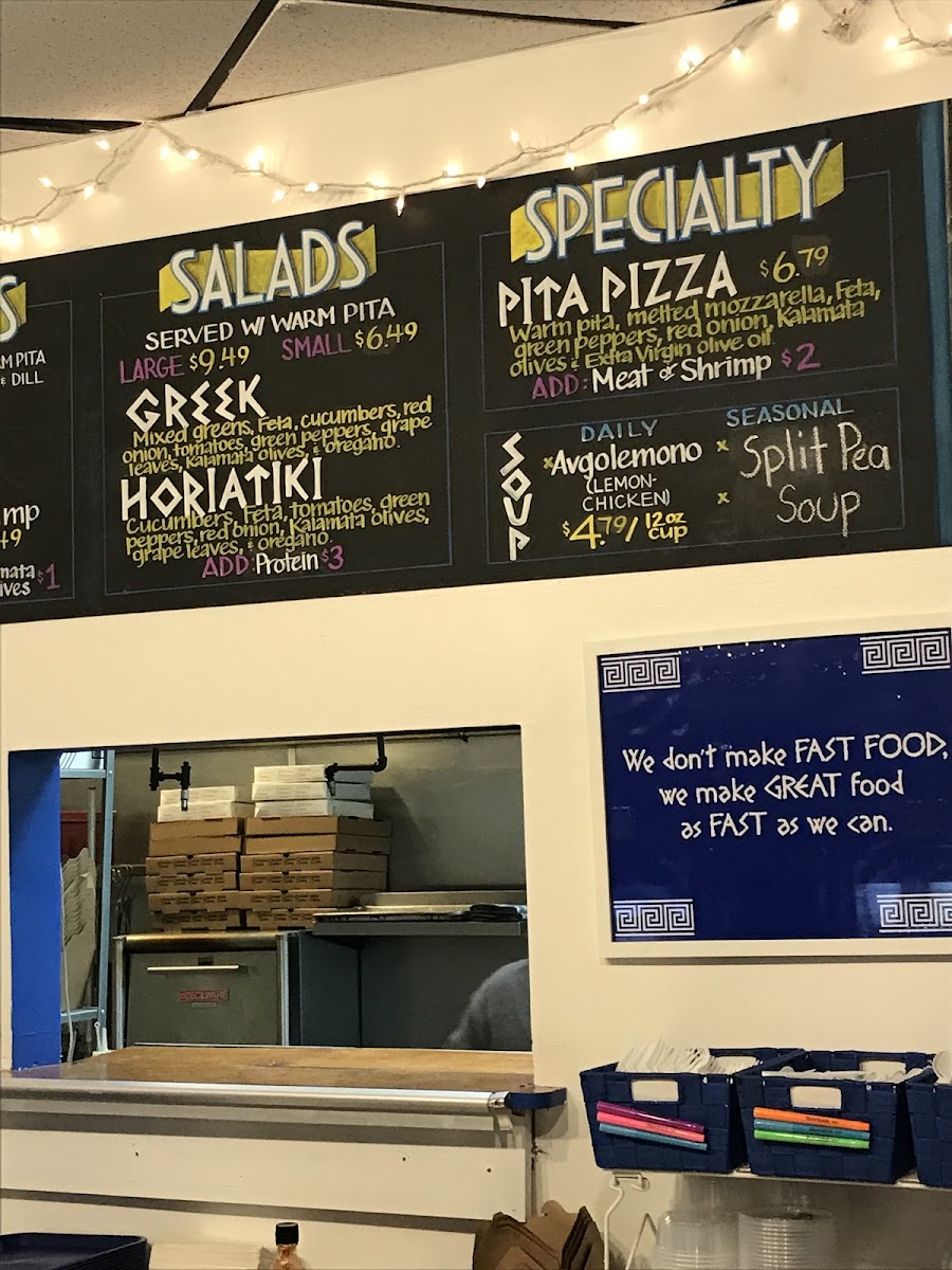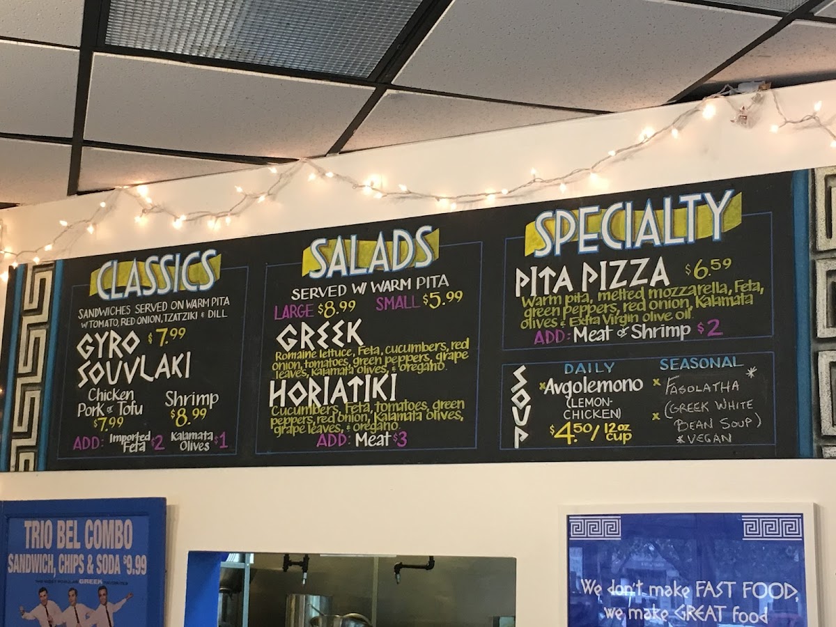 Delicious, shaved-off-the-spit ground lamb & beef Greek street food delight--our signature sandwich.